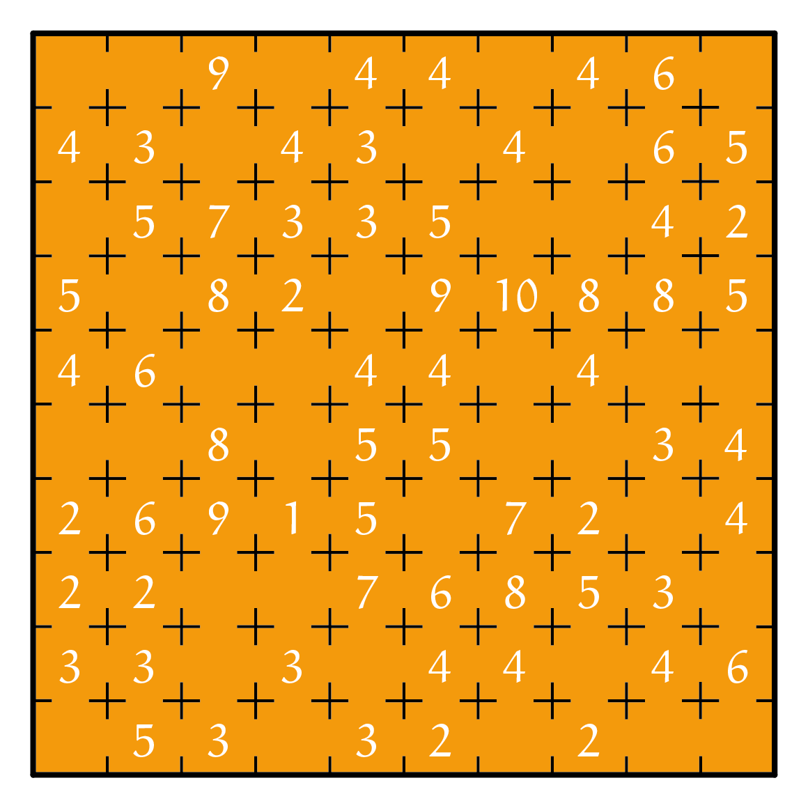Elkd cel stelt een kamer met deuren voor. Sluit sommige deuren zodat het cijfer aangeeft hoeveel kamers er horizontaal of verticaal kunnen gezien worden. Er zijn geen kamers met 4 gesloten deuren.