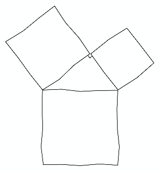 Dit is een interpretatie van het bewijs van Euclides uit zijn Elementen (rond 300 voor onze jaartelling). In plaats van parallellogrammen gebruikte hij de helften daarvan: driehoeken.