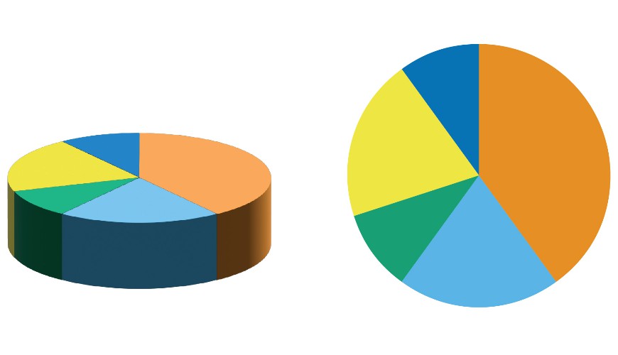 Grafieken zijn beelden opgebouwd uit lijnen, vormen, tekst en getallen. Soms worden er plaatjes van het onderwerp aan toegevoegd om de grafiek aantrekkelijker te maken of om snel zichtbaar te maken waar de grafiek over gaat. In de regel zijn grafieken plat, dus tweedimensionaal, zodat ze gemakkelijk zijn af te lezen en verschillende punten goed met elkaar zijn te vergelijken. Schending van deze regel door een driedimensionale grafiek te maken zorgt ervoor dat onderdelen op de voorgrond groter of belangrijker lijken dan die op de achtergrond en aan de zijkanten (zie figuur 1).