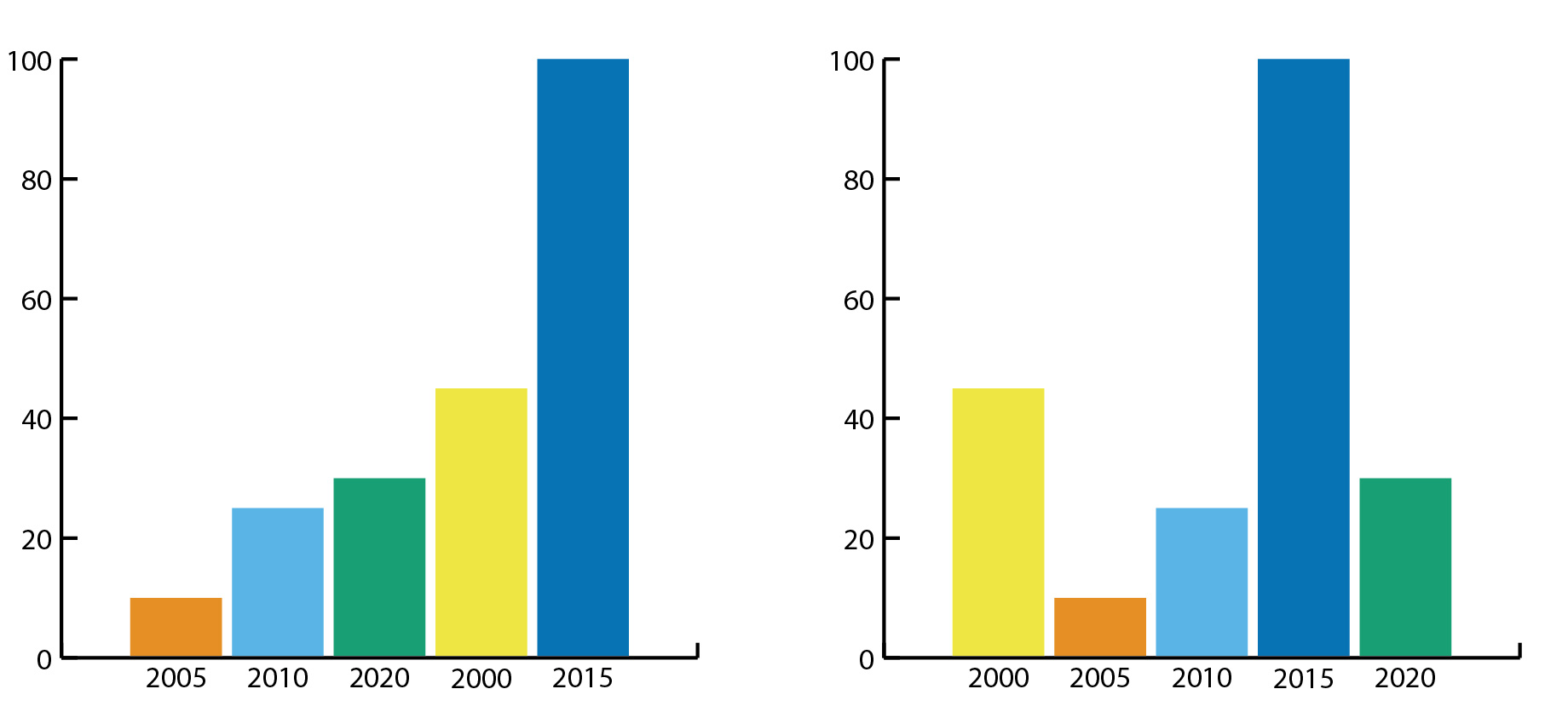 Dan is er een toename van het een of ander. Zijn er staven van verschillende lengten? Dan is er van het één meer dan van het ander. Dit soort van oordelen hebben we geleerd te maken van kleins af aan, door onze interactie met de wereld om ons heen: klim je een heuvel op dan win je aan hoogtemeters en van het grootste koekje uit de trommel kun je het langste genieten. Pas als we dit oordeel hebben geveld treedt de tweede fase van grafieken uitlezen in werking en gaan we kijken naar de assen en de labels en proberen we precieze cijfers af te lezen.