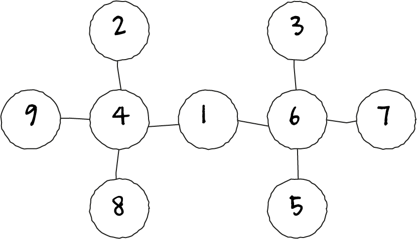 $b + c = 2, 6, 10, 14, 18$. De kleinste en grootste kunnen niet, want dan zou gelden $b = c = 1$ of $b = c = 9$. Voor $b + c = 6$ geldt $s = 13$ en zijn er twee mogelijkheden: $b = 1, c = 5$, niet mogelijk, omdat er al een $1$ is, en $b = 2, c = 3$, niet mogelijk, omdat dan $a = 10$. Zo vallen er nog meer mogelijkheden af, op één na: $b = 4, c = 6$ en $s = 14$. Nu leidt $b = 4$ direct tot $a = 9$ en $c = 6$ tot $d = 7$. Dan blijven $2, 3, 5$ en $8$ over. Dat levert $e = 2, f =8, g =3$ en $h = 5$.