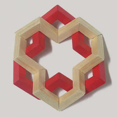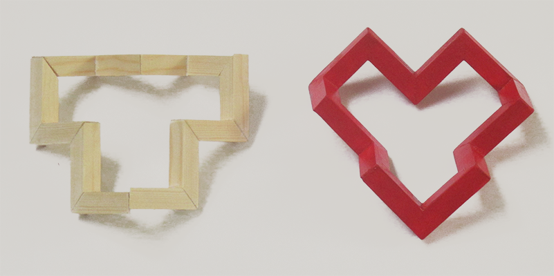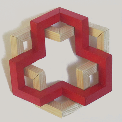 Het zal niet meevallen om dit in gedachten uit te voeren. Draai rood over $45^{\rm o}$ graden (kan zowel naar links als naar rechts). Leg hem op wit. Dan het geheel omkeren bovenkant onder en onderkant boven.