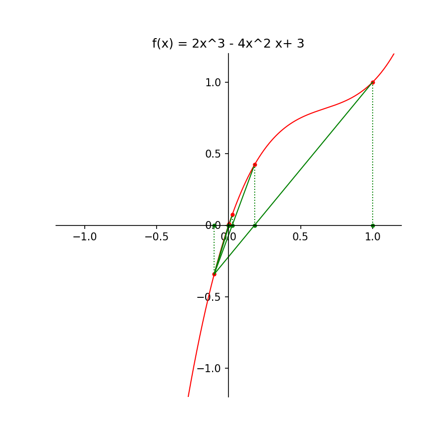 f1 = 2*x*x*x - 4*x*x + 3*x